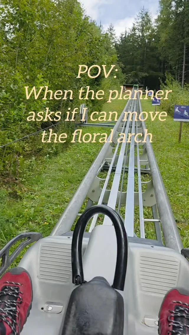 Loving those long cascades of flowers that create a sort of waterfall or draping effect? Rather than fill with a lot of greenery which despite what everyone believes is expensive. Start first with a gauzy fabric that drapes and add the flowers. It will hide the holes and you use less of everything but still be beautiful.